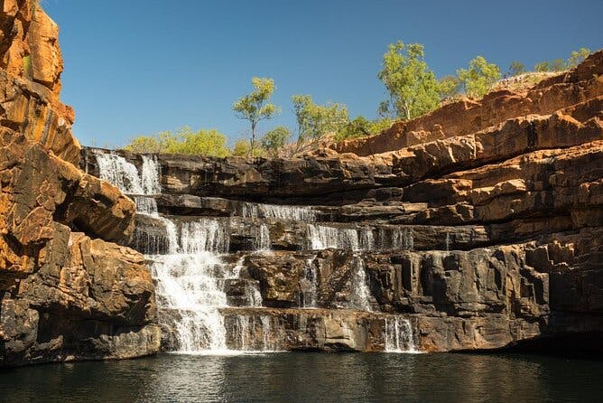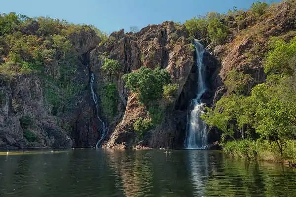 On your final stretch, stop at Edith Falls for a swim in the plunge pools. If time permits, detour through Litchfield National Park to see waterfalls, termite mounds, and swimming holes before reaching Darwin. End your journey at the Darwin Waterfront Precinct with dinner overlooking the ocean.