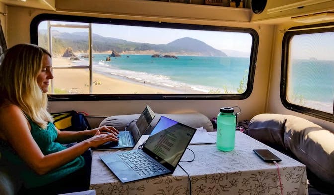 ✅ You already work remotely: Set up at campgrounds with Wi-Fi, or tether from your phone at rest stops with a view.