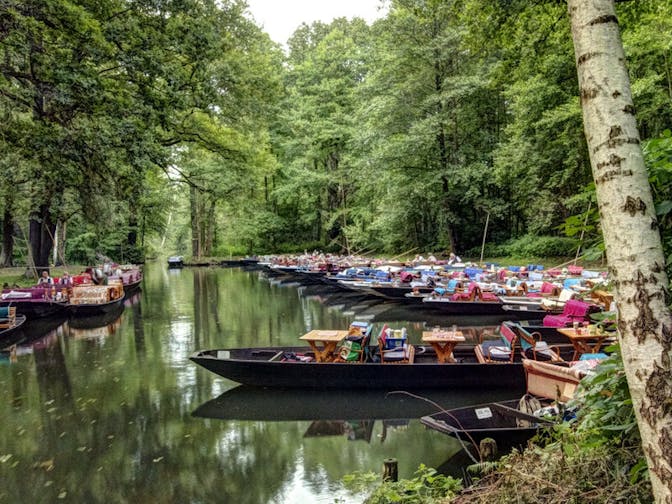 Roughly 1 hour from Berlin is Spreewald Biosphere Reserve. It's a forested area with a network of canals, traditional wooden houses, and cycling/hiking trails. It also has some local specialities like the Spreewald pickle!